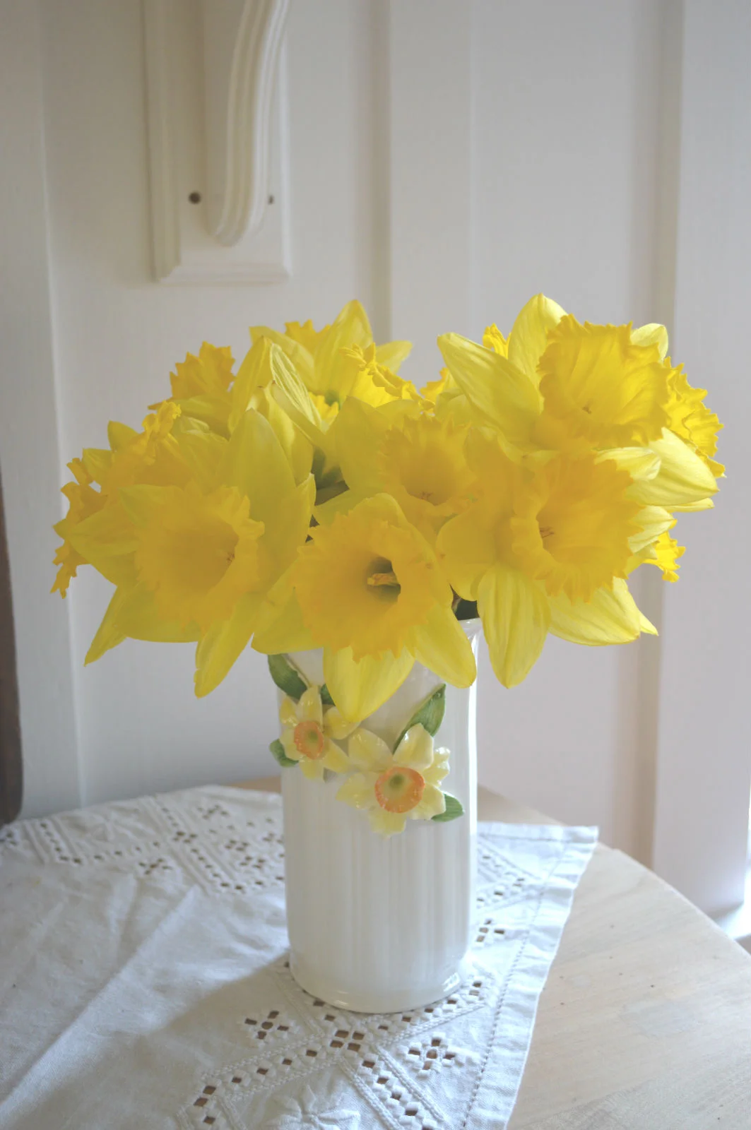 When it comes to flower arrangements, I prefer very simple ones....just one, or at the most, two varieties of flowers in a vase. Certain flowers say different things to me. A few months ago I read The Language of Flowers, a novel about a girl raised in the foster system who loves flowers and learns the Victorian meaning (the language) behind each one. I enjoyed reading this book, not only for the insightful look into the foster system, but also for the idea that flowers have their own language.